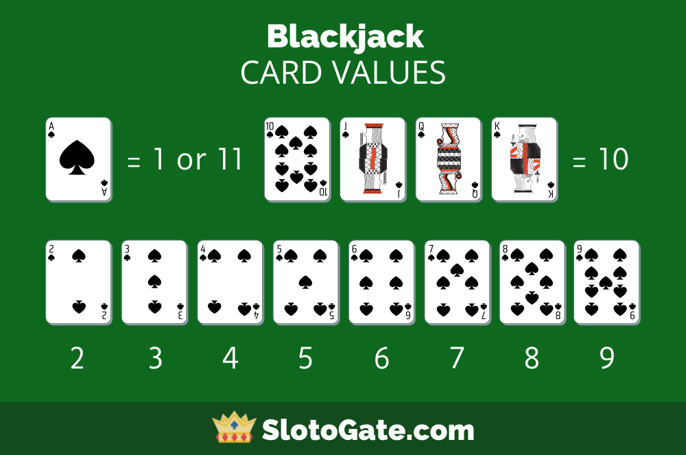 - Number cards (2-10) have the value stated on them. The face cards (Jack, Queen, King) give you 10 points, while Ace can give you 1 or 11 points.