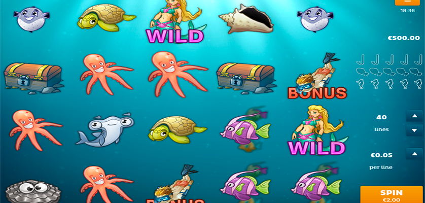 The Tropicana slot was created by SpiGo. It takes the player to the underwater kingdom. The high-value icons include the mermaid, the hammerhead shark, oysters, buried treasures, and chests. The low-paying ones are corals, ballfish, starfish, turtles, and octopuses. The slot’s features include wilds, a bonus mini-game, and free spins.
