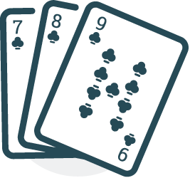 Three cards in sequence of mixed suits.