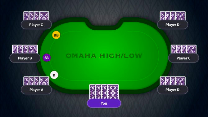 In Omaha High/Low (also known as Hi-Lo), players construct two different five-card high and low hands by combining two of their four hole cards with three of the five community cards.