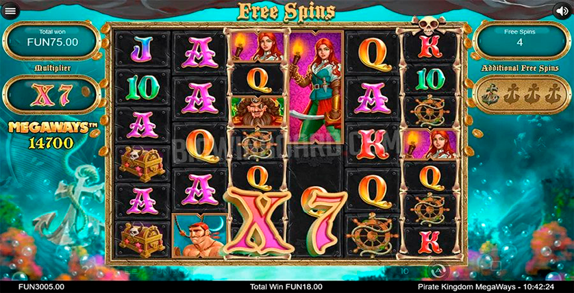 With Pirate Kingdom Megaways, the players can easily dive into the game with lucrative bonuses and reckless sea wolves as they discover the slot’s 117,649 winning ways. There are 6 reels in Pirate Kingdom Megaways, as well as the Cascading Wins feature that doubles the winning combinations. The maximum win is 40,000x the total bet. With an RTP of 96.2%, the game is perfect for medium rollers. 8 free spins can be activated by the Cascading Wilds. The slot was created in 2019, with the design team from Iron Dog Studio helping the players land treasures on the reels.
